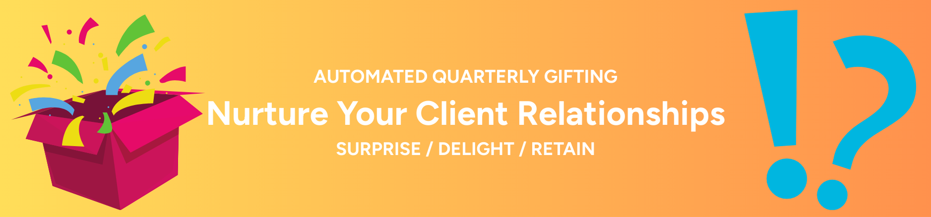 Our client retention program is a strategic, automated program that sends unexpected gifts to clients 2–4 times per year to nurture relationships, show appreciation, and keep your brand top of mind — without asking for anything in return.
